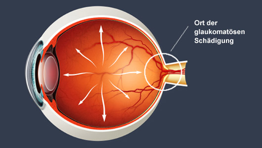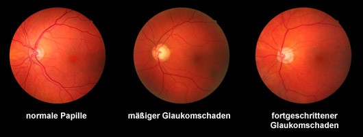 Dadurch entstehen Ausfälle im Versorgungsbereich der Nervenfasern und somit im Gesichtsfeld. Diese Gesichtsfeldausfälle beginnen meist im äußeren Gesichtsfeldbereich, vergrößern sich langsam von außen nach innen, bis letztlich auch das zentrale Sehen betroffen ist.