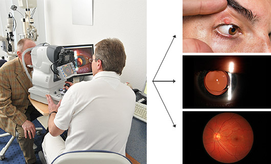 Unsere Praxis verfügt über zwei hochauflösende Kamerasysteme, mit denen wir fotographische Befund-Dokumentationen im vorderen Augenabschnitt, incl. der Lidregionen und des Augenhintergrundes, d.h. der Netzhautstrukturen durchführen können. Diese Fotographien werden digital bearbeitet und gespeichert. Dadurch ist es uns möglich, auch "versteckte" Befunde dem Patienten transparent zu veranschaulichen und besonders eine Verlaufskontrolle durchzuführen, mit der wir frühzeitig geringste Veränderungen feststellen können. Hierdurch können z.B. das Wachstum eines Lidtumors, Linsenveränderungen oder Zunahme von Netzhautveränderungen, z.B. bei Diabetikern, eher und sicherer nachgewiesen werden.